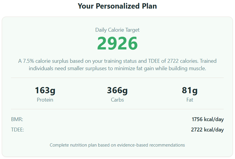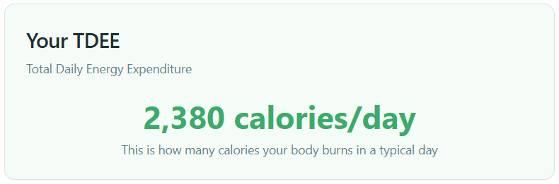 Your Total Daily Energy Expenditure adds your daily activity on top of your BMR. This calculator gives you a clear calorie target for maintaining, gaining, or losing weight based on your lifestyle and goals - one of the most useful numbers for nutrition planning.